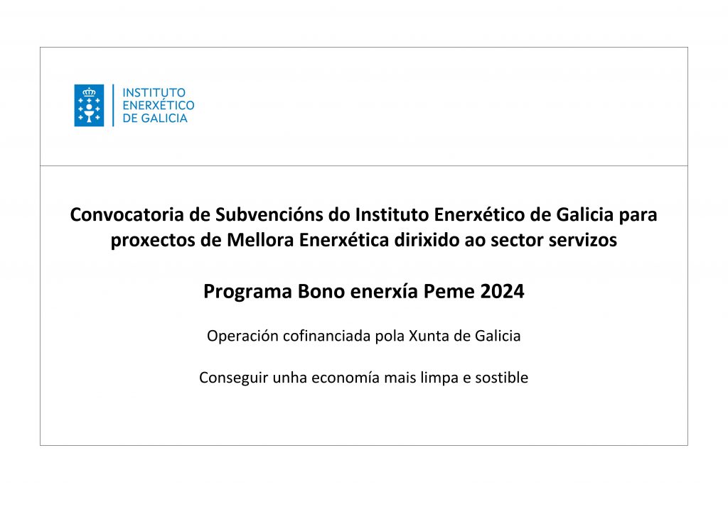 | Convocatoria de Subvencións do Instituto Enerxético de Galicia para proxectos de Mellora Enerxética dirixido ao sector servizos